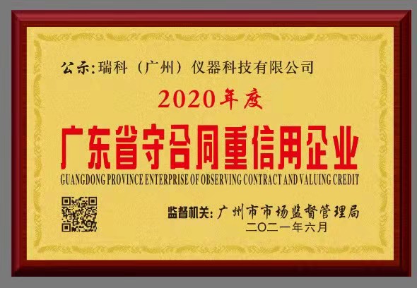 再傳捷報!瑞科儀器榮獲“2020年度 廣東省守合同重信用企業(yè)”認定