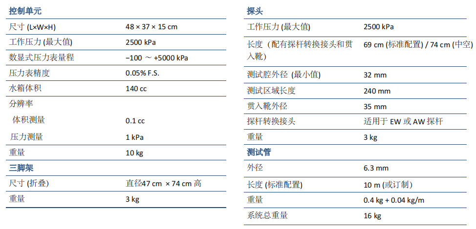 單腔探頭由裝配有可充氣氣囊、流體入口和飽和端部的圓柱體、錐形貫入靴和探桿轉(zhuǎn)換接頭組成。