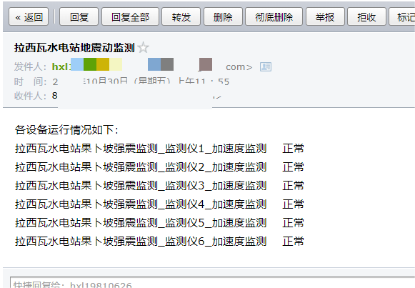 在網(wǎng)絡(luò)暢通情況下,系統(tǒng)可以通過(guò)郵件發(fā)送系統(tǒng)運(yùn)行狀態(tài),當(dāng)?shù)卣鹗录l(fā)生后,可將分析結(jié)果與報(bào)告發(fā)送到郵箱。