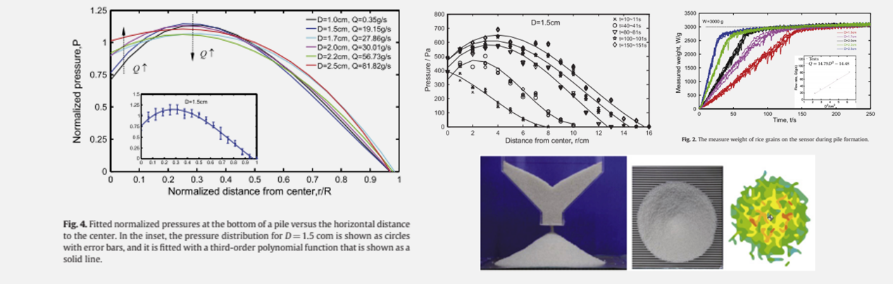 砂堆底部應(yīng)力的降低表現(xiàn)出顆粒材料已知的制備依賴性。通過使用基于網(wǎng)格的觸覺壓力傳感器,我們仔細(xì)測量了通過將米粒漏斗輸送到傳感器上形成的錐形樁底部壓力文件的逐漸發(fā)展。在小流量下觀察到應(yīng)力顯著降低,但在大流量下逐漸消失。這一結(jié)果有助于理解砂堆內(nèi)部的應(yīng)力分布。