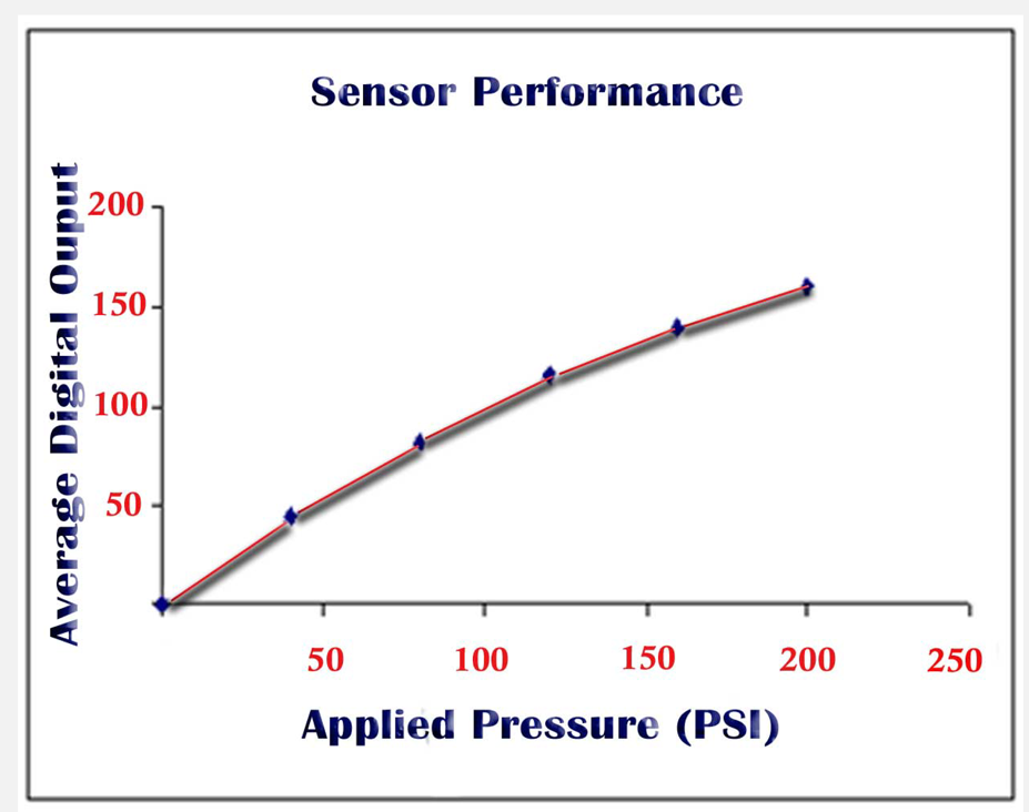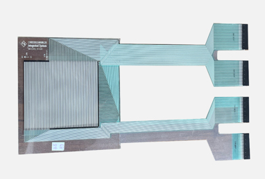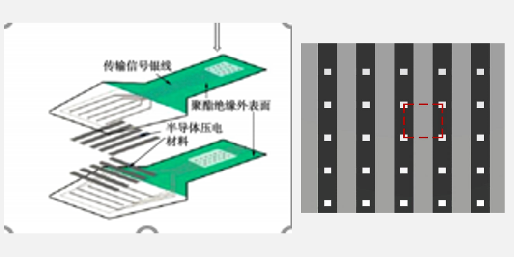 將感應(yīng)壓阻墨水按縱向與橫向印刷在傳感器的基底聚酯材料上,縱向感應(yīng)印刷一面,橫向感應(yīng)印刷一面,當(dāng)這個(gè)區(qū)域受壓后,橫向感應(yīng)條與縱向感應(yīng)條交疊,產(chǎn)生電阻輸出,通過測量變化后的電阻值,算出施加的壓力值。