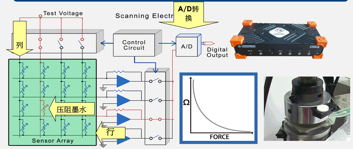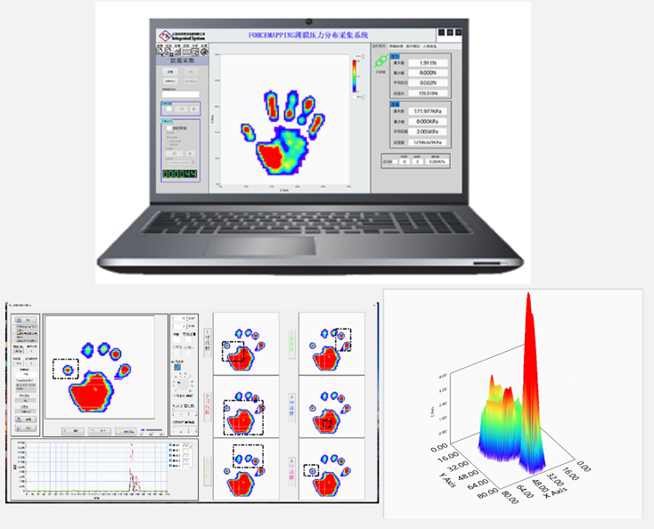 ForceMapping薄膜壓力分布測試系統(tǒng)由薄膜壓力分布傳感器、采集器和測試軟件三部分組成。