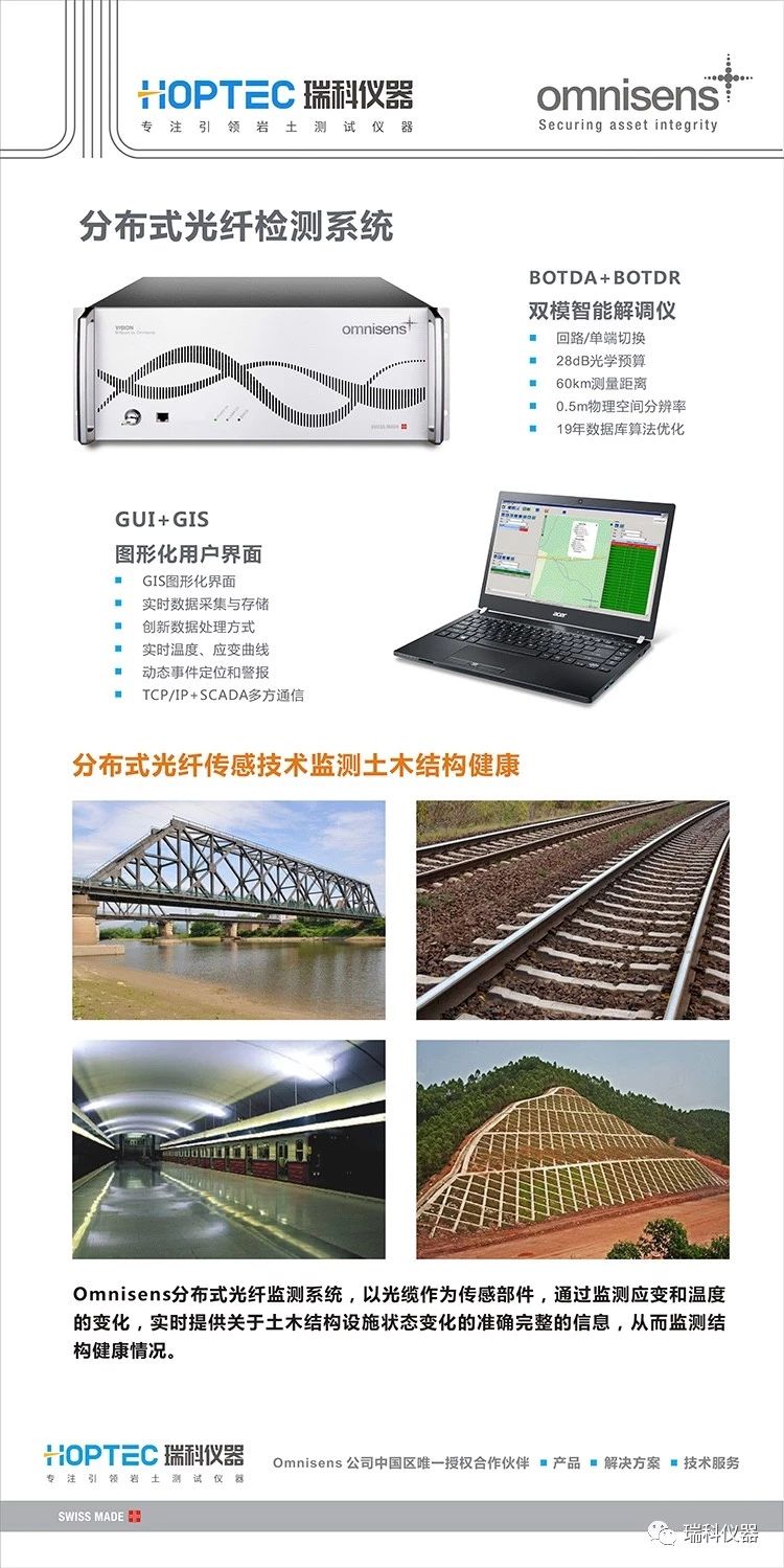 瑞士Omnisens公司是高性能光纖監(jiān)測領(lǐng)域的世界領(lǐng)導(dǎo)者,其獨(dú)特的雙模式(BOTDA+BOTDR)分布式溫度及應(yīng)變測試系統(tǒng)廣泛應(yīng)用于油氣管道、電力電纜、橋梁隧道、公路軌道、水文水利及巖土邊坡監(jiān)測等領(lǐng)域。