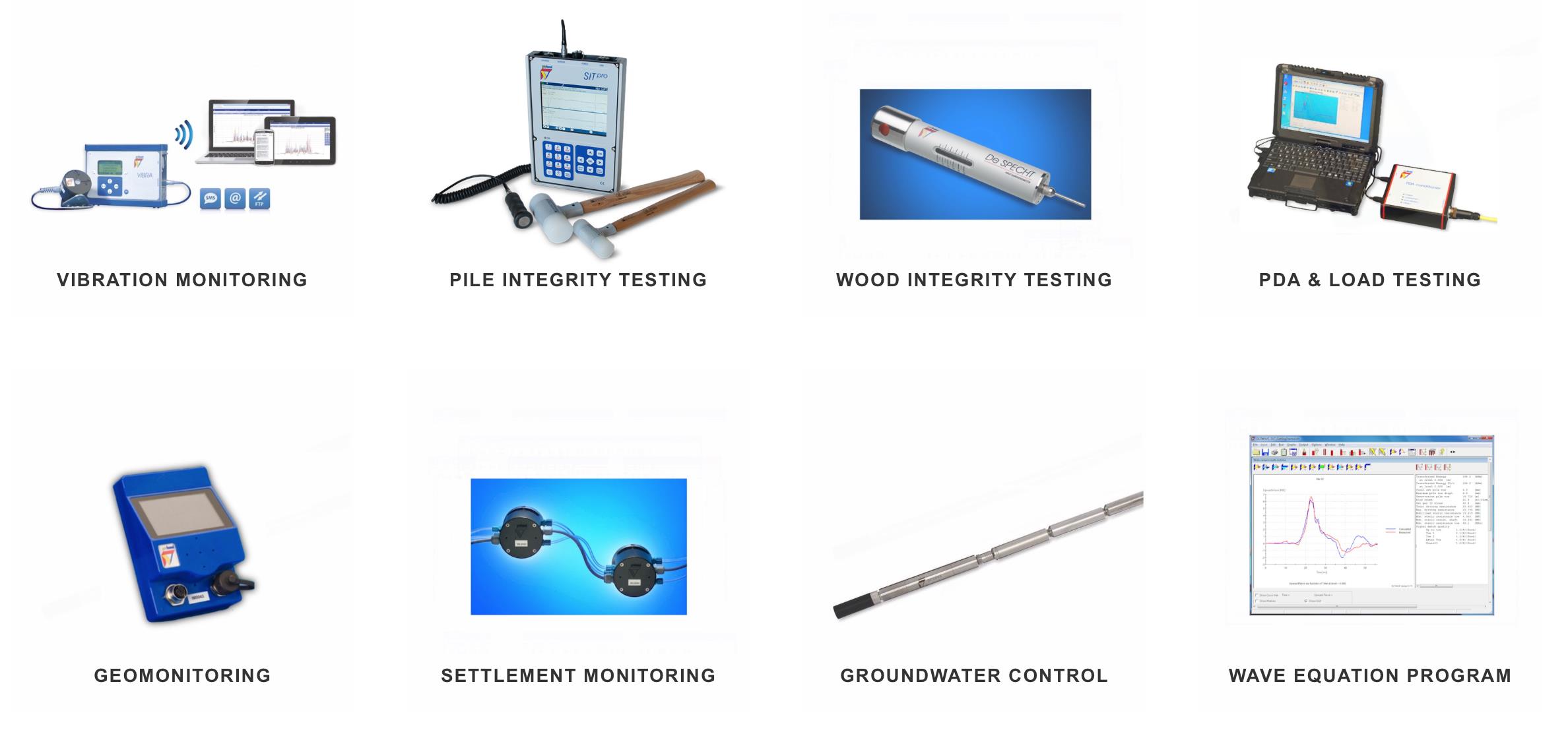 荷蘭ProfoundB.V.公司目前擁有的產(chǎn)品包括:樁身完整性測試儀、高應(yīng)變打樁分析儀、振動監(jiān)測儀、木材完整性測試儀、波動方程軟件、巖土監(jiān)測系統(tǒng)、沉降監(jiān)測系統(tǒng)和地下水控制系統(tǒng)等。