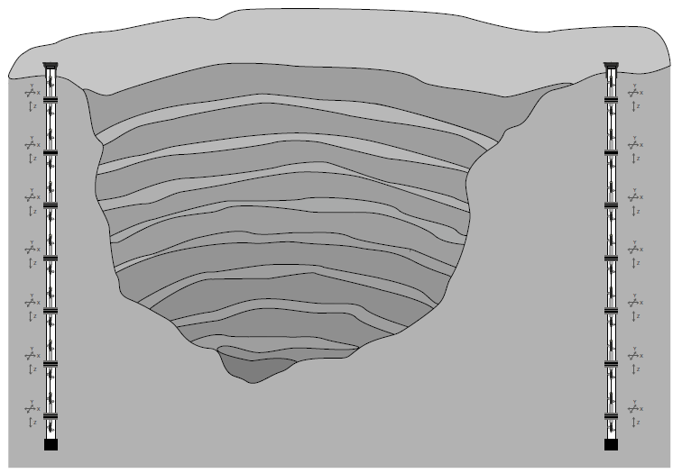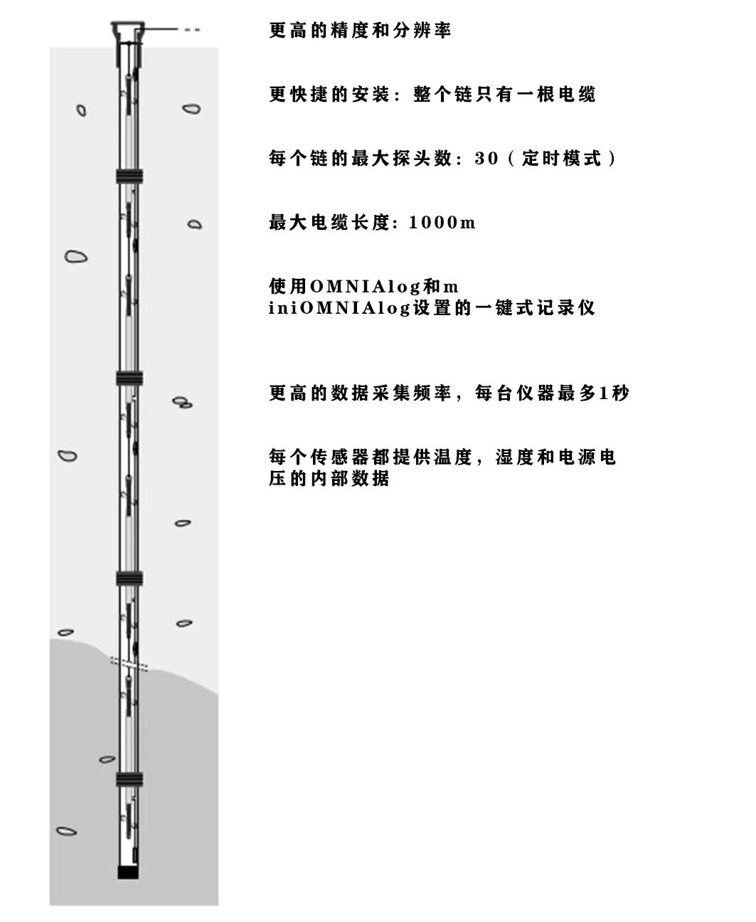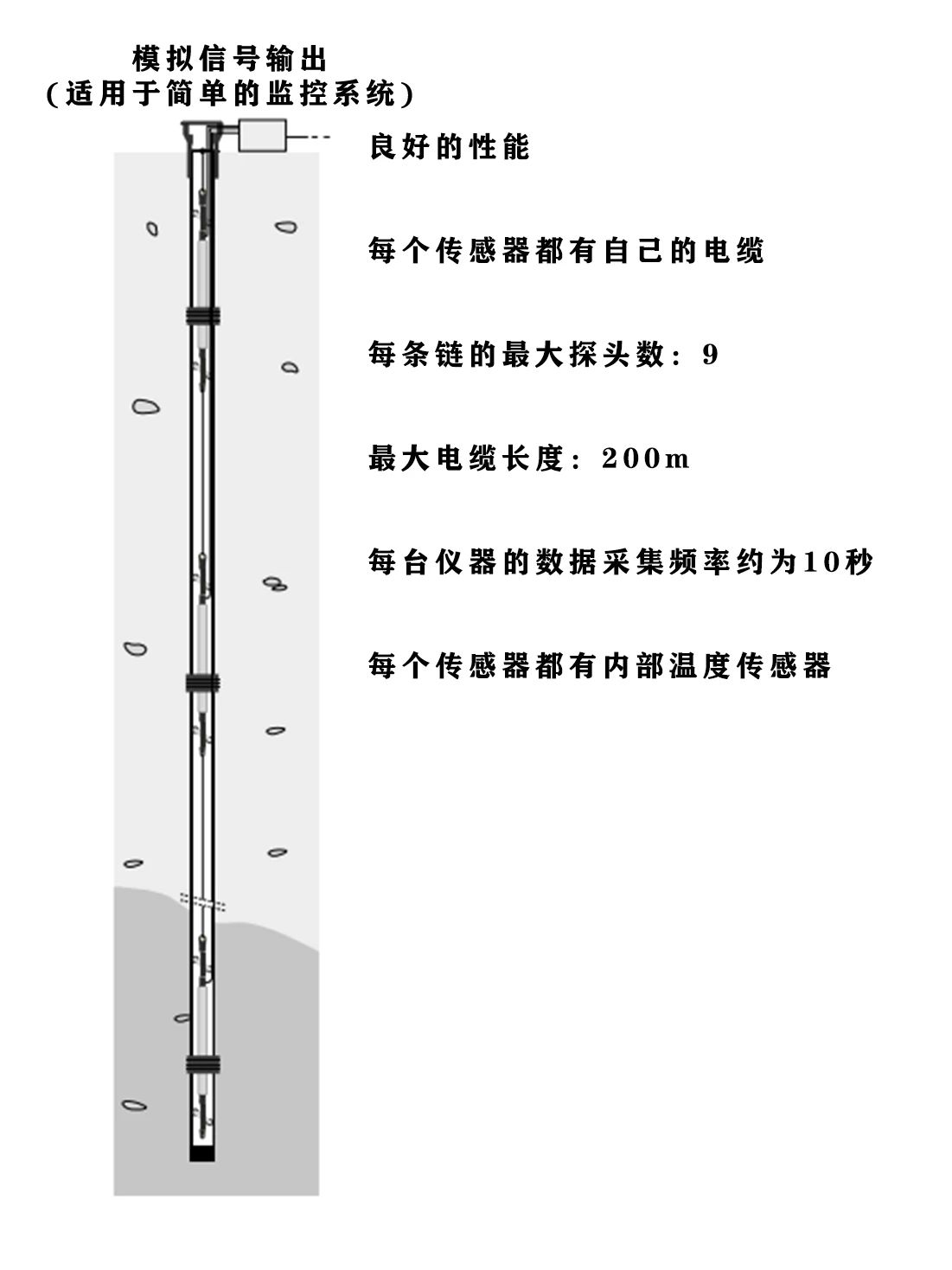 安裝在鉆孔中的探頭鏈具有獨特的優(yōu)勢,通過安裝有探頭鏈的測斜管可以傳回其周圍地面的3D剖面圖。