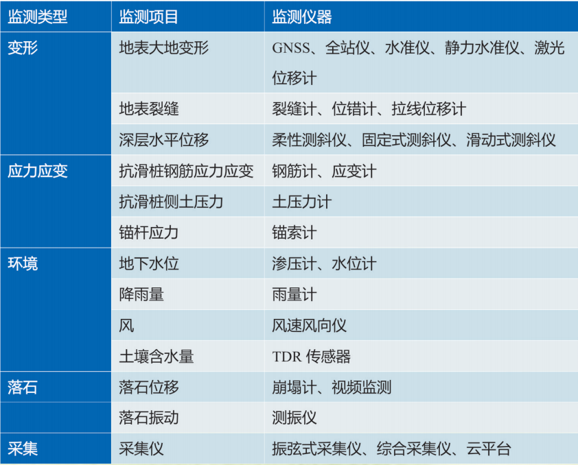 邊坡工程監(jiān)測(cè)項(xiàng)目及設(shè)備: