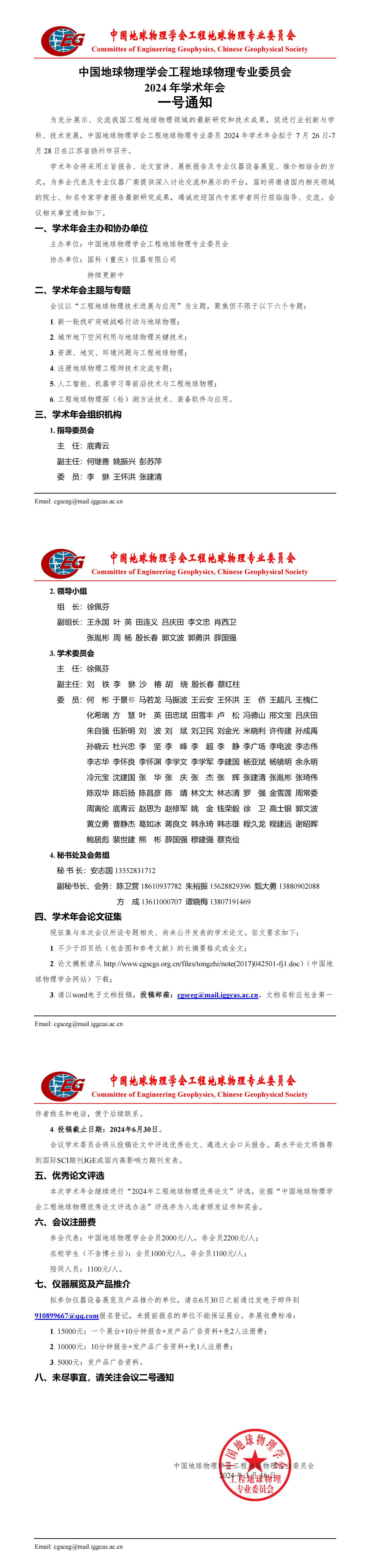 中國地球物理學(xué)會工程地球物理專業(yè)委員會 2024 年學(xué)術(shù)年會 一號通知