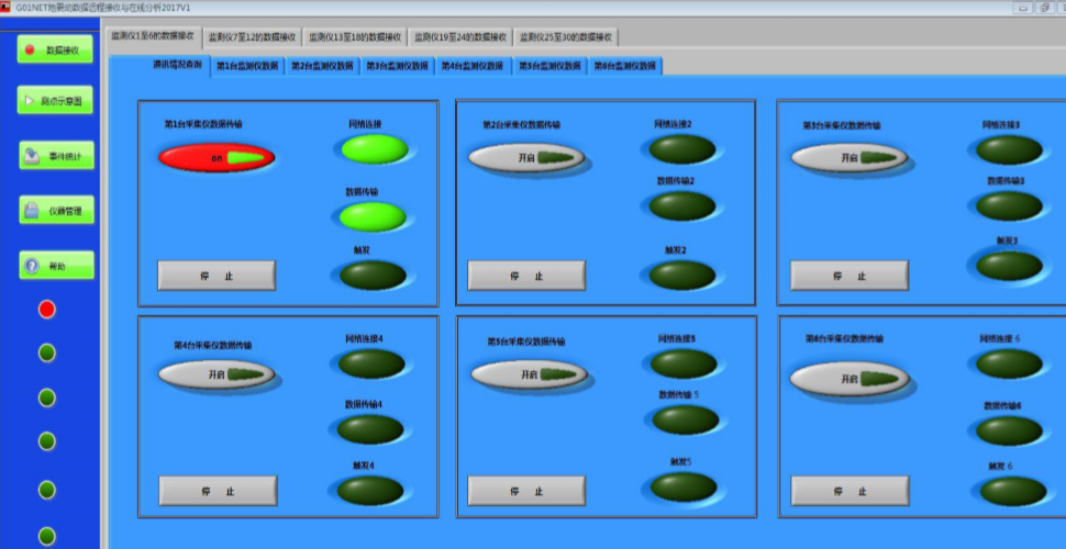 用 途:此軟件基于G01NET-FDC監(jiān)測軟件在線分析結(jié)果,定時統(tǒng)計各被監(jiān)測建筑物動力響應(yīng)參量的報警情況,且通過極坐標(biāo)視圖實時繪制和更新統(tǒng)計結(jié)果。