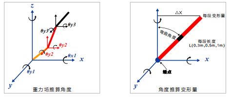 ?每個(gè)測(cè)量單元安裝有三個(gè)加速度傳感器,通過(guò)測(cè)量傳感器的加速度值來(lái)計(jì)算出對(duì)應(yīng)軸與重力方向的夾角θ。