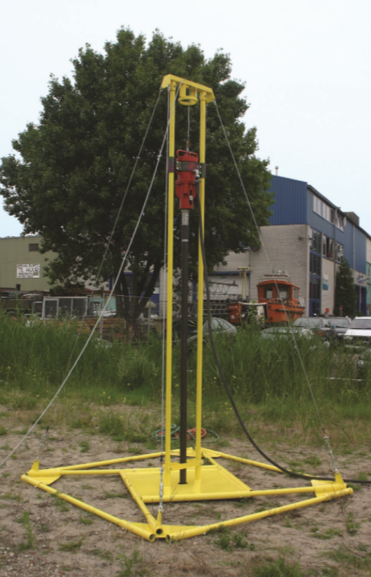 SBS300重約400kg,高度為4米。因此,小型起重吊車足以將貫入裝置提升到浮筒船的側(cè)面并將其定位在海底。錘子的重量為50kg,鉆桿上的頻率為每分鐘1400次。SBS 300可以獲得3米長的海底土樣。