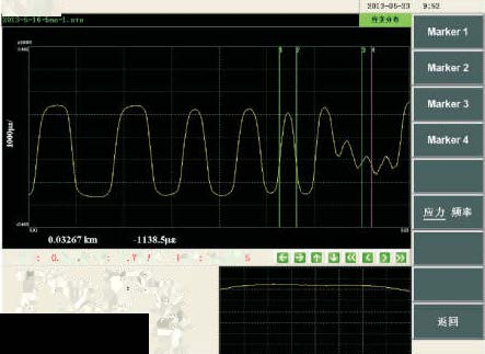 光0.3157km處被拉伸產了明顯的應變,應變值為約為4992.6με。