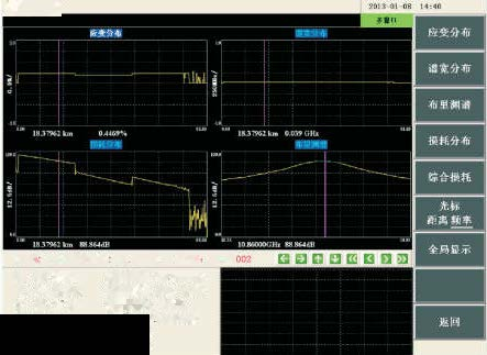 6419/A光纖應變分布測試儀能夠同時測試光纖光纜的應變分布、 損耗分布及各距離點的布里淵散射譜, 具備30及多種分布參數(shù)同時顯示功能, 具有應變測試精度高、 重復性好及單端無損測試等優(yōu)點, 是光纖通信及光纖傳感領域不可或缺的測試儀器。6419/A光纖應變分布測試儀可廣泛應用于橋梁 、 大壩 、 隧道、 高大建筑、石油鉆井平臺 、 石油管道等的健康狀態(tài)檢測,山體滑坡、 j尼石流及地震等地質災害的預測預報 , 大型海上艦艇 、 航空航天器等智能結構的健康狀態(tài)檢測等領域。該產品也適用于在光纖陀螺、 光纖水聽器的研制與生產檢測過程中及在海底光纜的研制 、 生產、 施工 、 驗收及鏈路維護等過程中對光纖環(huán)及海底光纜的應變分布測試。