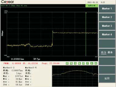 在10ns脈沖寬度下, 在11km處測試光纖的應變精度達到約±18με
