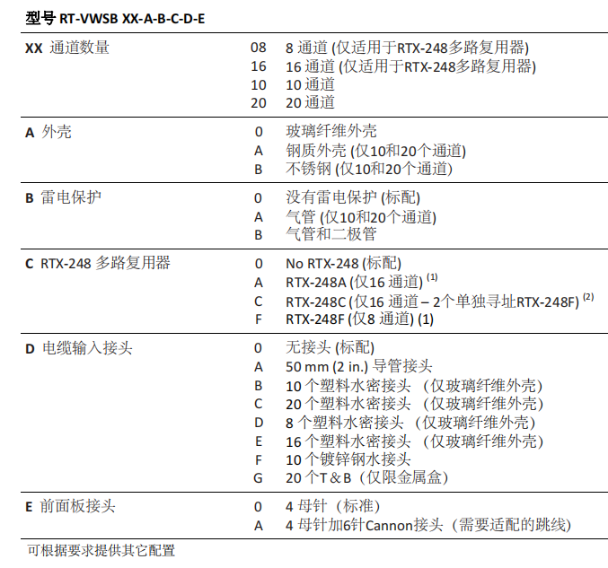 用 途:RT-VWSB是一個堅(jiān)固的開關(guān)盒,用于將多個傳感器分組在一個通道,提供了方便的讀數(shù)方式。