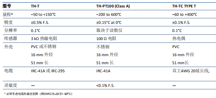 溫度傳感器提供三種不同的型號(hào):TH-T,TH-PT100TH-TC