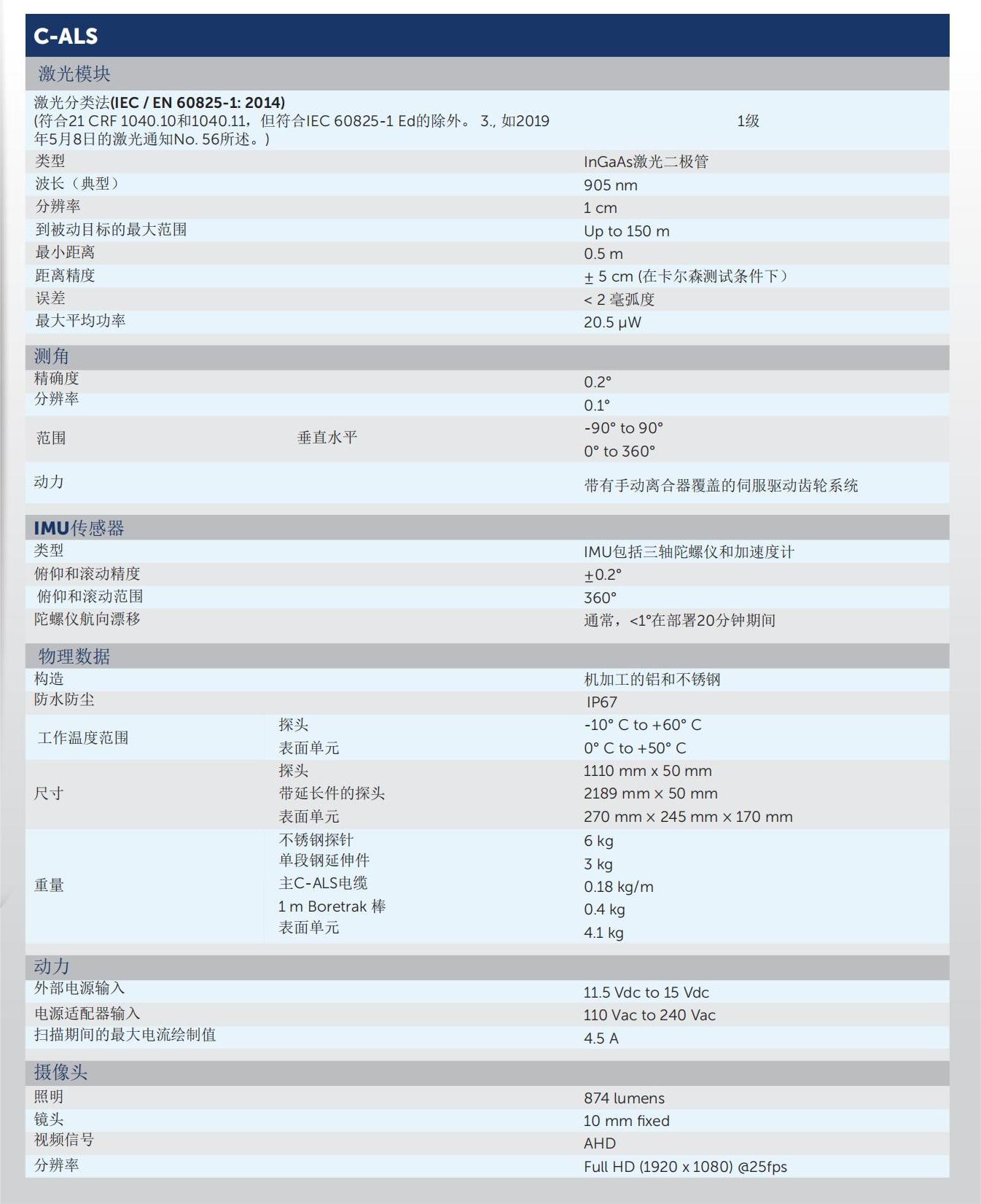 卡爾森C-ALS HD是一個(gè)空腔自動(dòng)掃描激光系統(tǒng)配備高清相機(jī)和874流明聚光燈。該新系統(tǒng)能夠在地下空洞和崎嶇不平的環(huán)境中進(jìn)行360°掃描,用于觀察、測(cè)繪、風(fēng)險(xiǎn)評(píng)估等。C-ALS HD可通過76毫米鉆孔部署,并提供通用的部署選項(xiàng)。C-ALS HD的擴(kuò)展部署范圍可達(dá)205米。