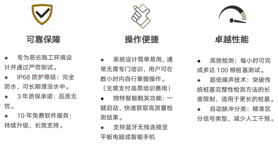 適用于中小型樁基的快速簡(jiǎn)便檢測(cè),基于樁基完整性檢測(cè)方法(PIT),可高效評(píng)估深樁基礎(chǔ)的結(jié)構(gòu)狀態(tài)。